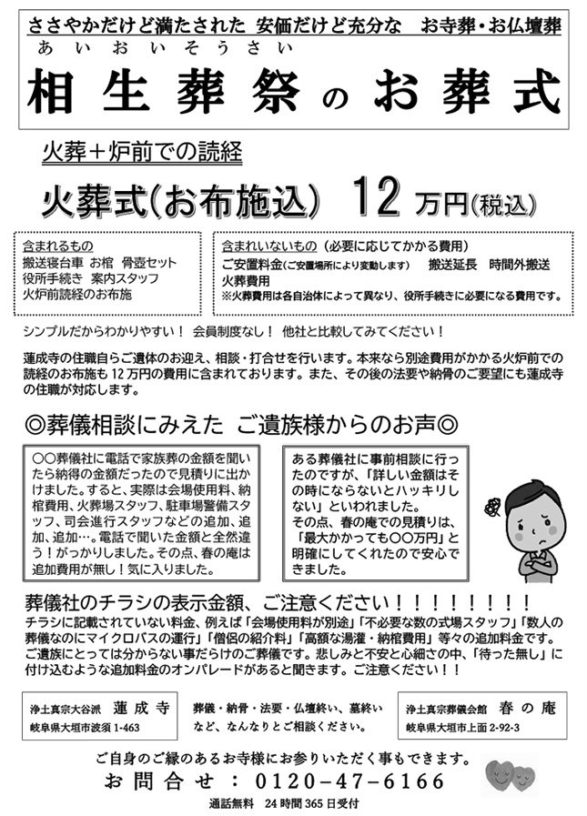 わからないことがわからない方も多いと思います。その時、慌てないために様々な不安を解消するのが事前相談です。相生葬祭はご遺族の気持ちや考えに寄り添い葬儀プランを決めていきますのでご安心ください。